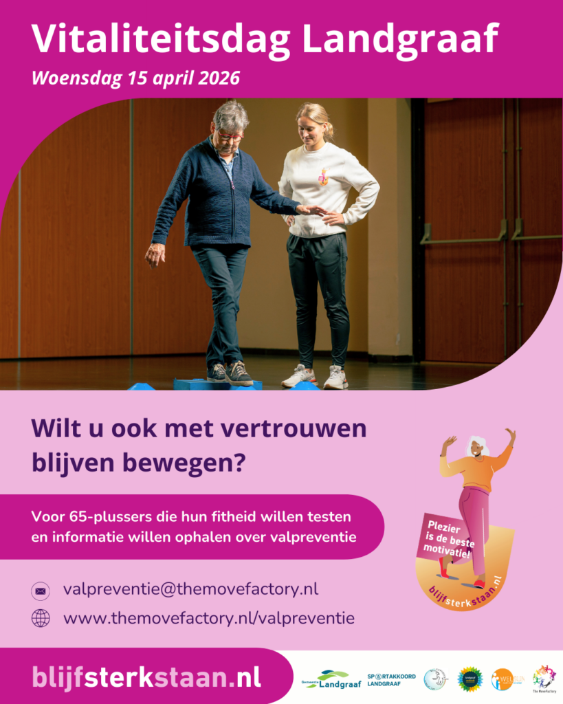 Op woensdag 15 april 2026 organiseert The MoveFactory samen met SV PHDES, in opdracht van Gemeente Landgraaf een Vitaliteitsdag voor thuiswonende 65-plussers in de gemeente Landgraaf. De bijeenkomst staat in het teken van ‘Valpreventie, Fit blijven en Vitaal ouder worden’.